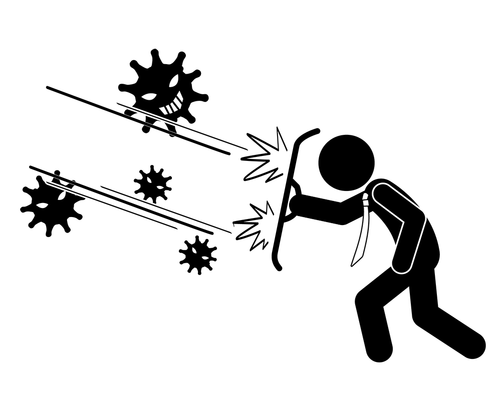 コロナウイルスに立ち向かう。困難に立ち向かう。盾で防御する。 - ビジネス|クリップアート|フリー素材