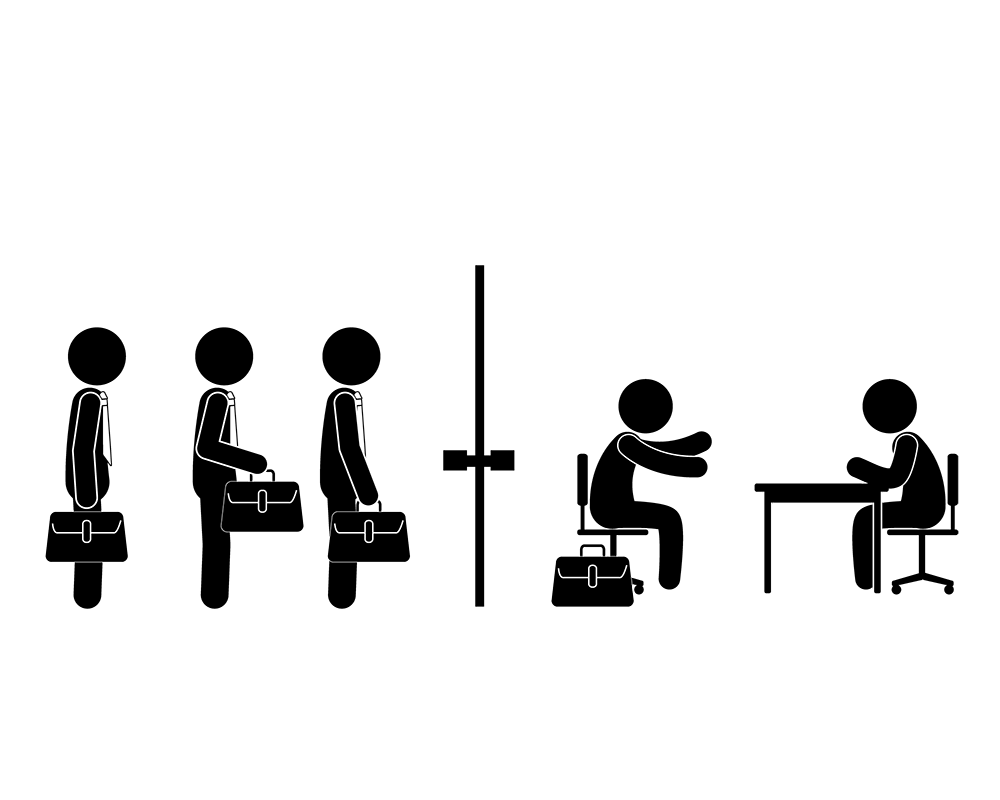 面接を受けに行く。たくさんのライバルたち。面接に行列ができる。 - ビジネス|クリップアート|フリー素材