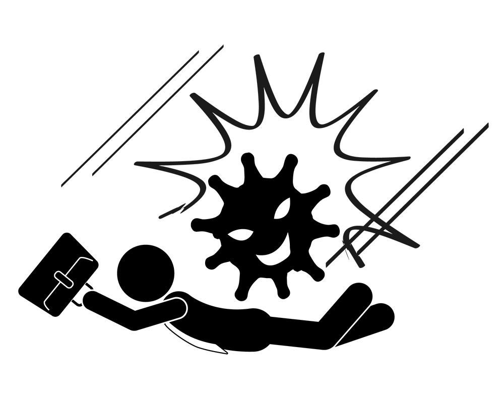 コロナウイルスの影響で売上が下がる。ビジネスに影響が出る。倒れる人物。 - ビジネス|クリップアート|フリー素材